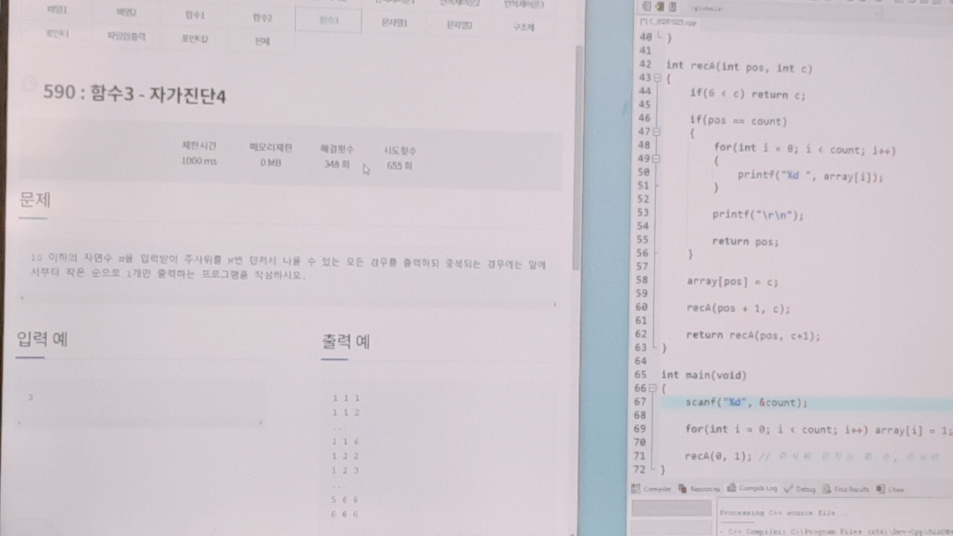 recA(0, 1); // 주사위 던지는 회 수, 주사위 값