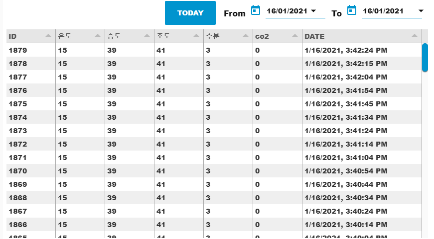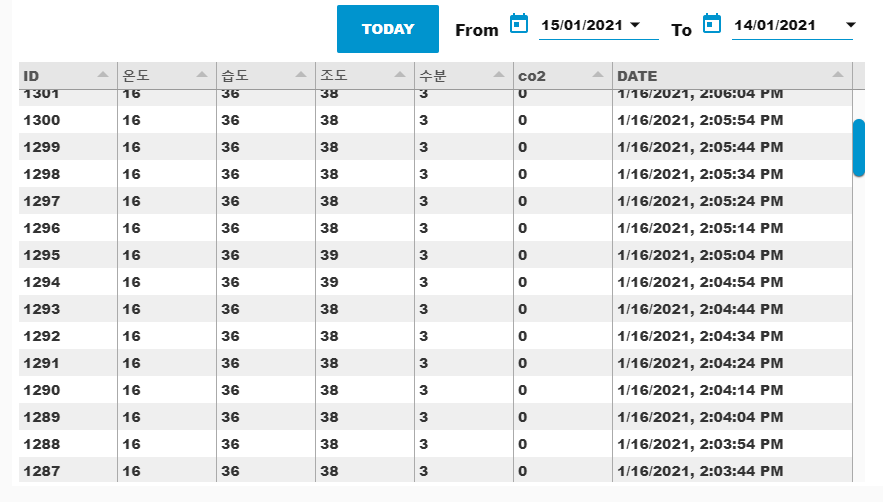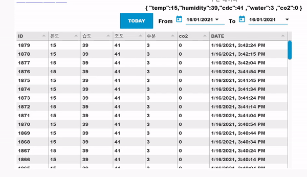 | 데이터 리스트에 날짜를 적용하여 유저가 설정한 날짜의 데이터를 보여줍니다. |