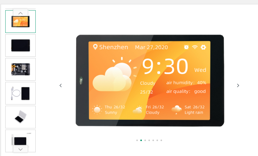 저전력 소모의 고집적 ESP32-WROVER-B 모듈 손쉬운 상호 작용을 위한 3.5인치 320x480 정전식 2포인트 멀티 터치 스크린 그래픽 끌어서 놓기 프로그래밍을 사용하여 프로그래밍하기 쉽습니다. Wi-Fi 및 BLE를 통한 무선 연결 확장 인터페이스를 통한 버튼 조작, 음성 제어, 카메라 조작과 같은 기능 사용자 정의 설명 이제 ESP32 개발 보드로 손쉬운 터치 상호 작용을 경험할 수 있습니다! WT32-SC01은 3.5인치 컬러 터치스크린을 탑재한 ESP32 개발보드입니다. 터치 스크린은 ESP32와 상호 작용하는 새로운 방식을 가능하게 합니다. 이 보드에는 그래픽 끌어서 놓기 프로그래밍을 지원하고 사용자가 맞춤형 제어 플랫폼을 개발하는 데 도움이 되는 그래픽 사용자 인터페이스(GUI) 펌웨어가 장착되어 있습니다. WT32-SC01 개발 보드는 Wi-Fi, Bluetooth, 4MB SPI 플래시 및 8MB PSRAM을 갖춘 범용 MCU 모듈인 ESP32-WROVER-B 모듈을 채택합니다. 개발자는 개발 보드의 양쪽에 있는 확장 인터페이스를 사용하여 버튼 조작, 음성 제어 및 카메라 조작과 같은 기능 사용을 사용자 정의할 수 있으므로 사용자의 개발 주기가 크게 단축됩니다. |