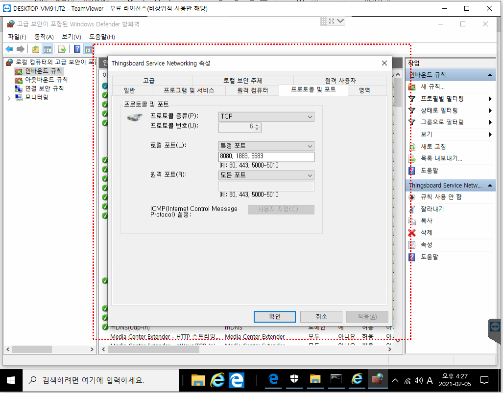 설치문서에 따라 방화벽 포트를 설정하세요.