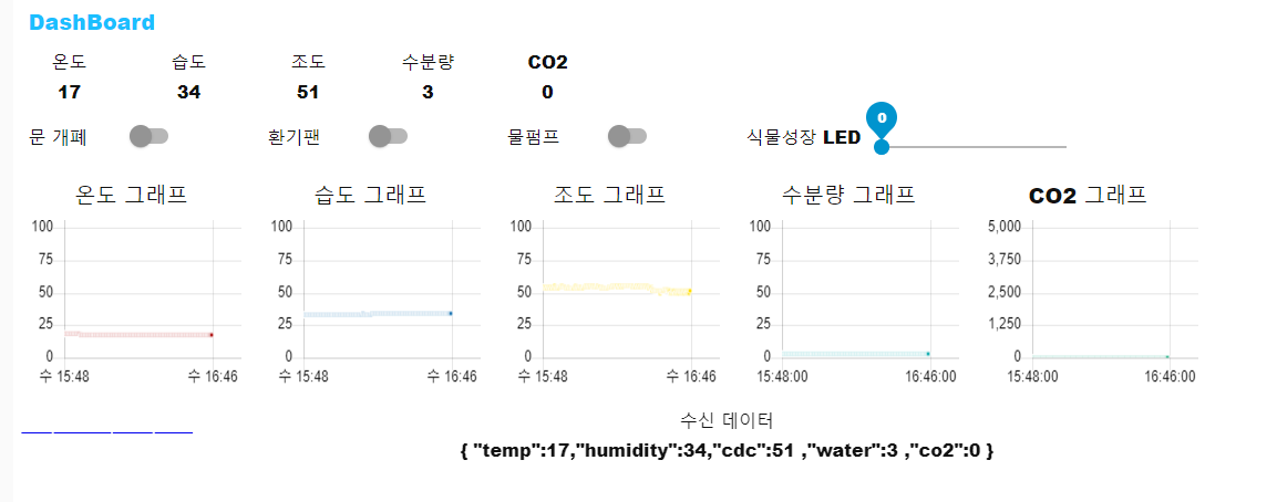 스마트팜 센서데이터를 텍스트 와 그래프로 표시합니다.