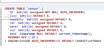 `co2` int(10) unsigned DEFAULT 0,