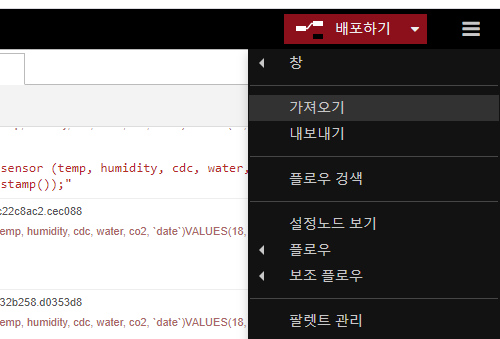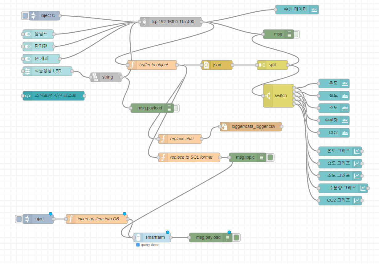Node-RED에서 스마트팜보드로부터 데이터 수신를 수신합니다.