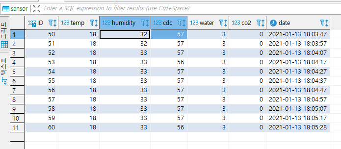 MariaDB 에 센서 값을 추가합니다.