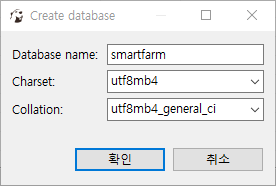 MariaDB에 smartfarm 데이터베이스를 생성합니다.