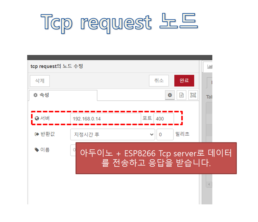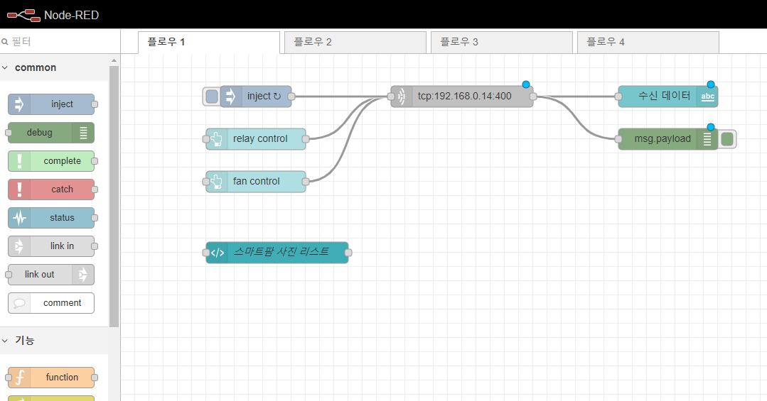 Node-RED 와 TCP 소켓을 열어 데이터를 송수신합니다.