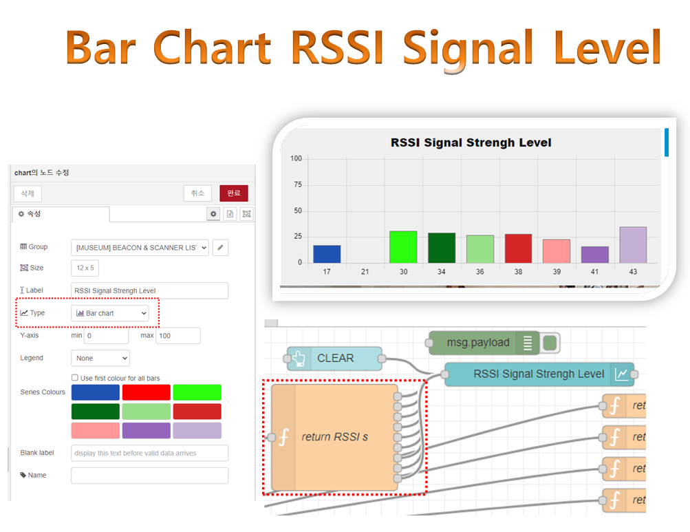 비콘에 대한 스캐너들이 신호세기값을 바차트로 표시합니다.