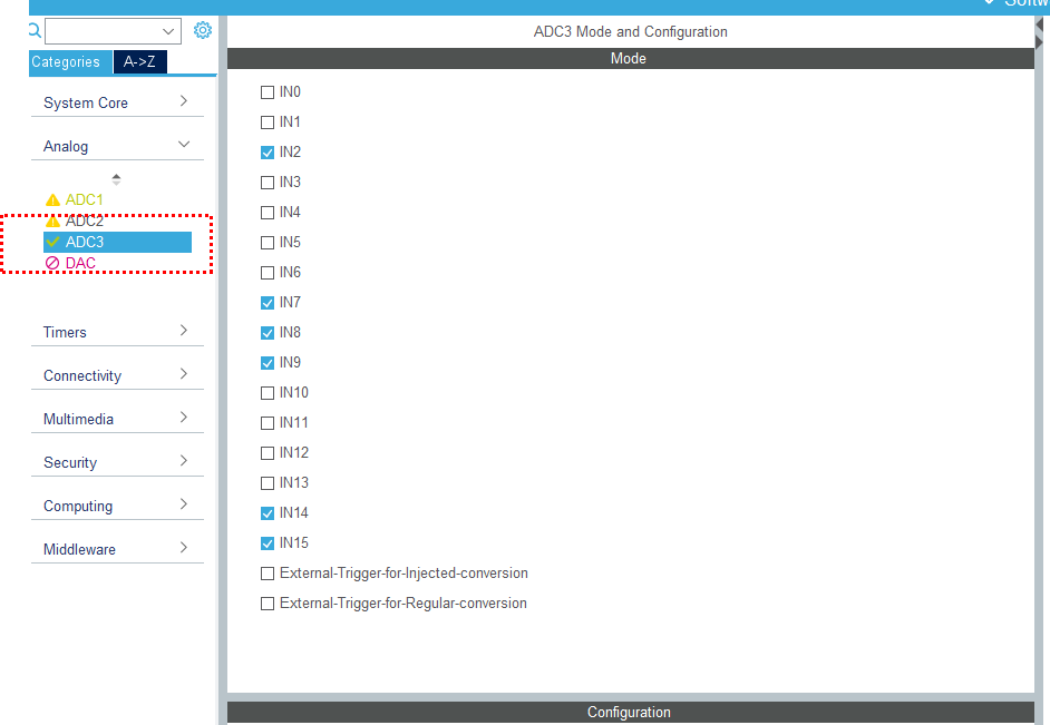 //HAL_ADC_PollForConversion(&hadc3, 10); //set adc address and time out value