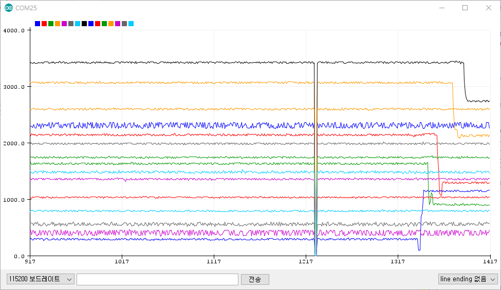 아두이노 시리얼프로터를 이용하여 ADC값을 그래프로 표시합니다.