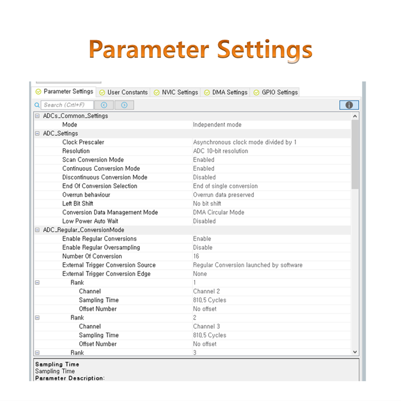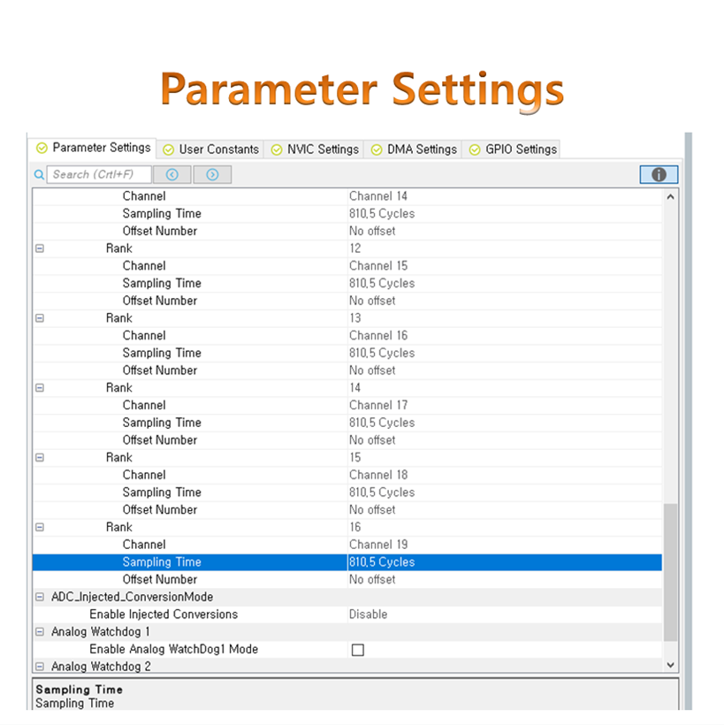 ADC1을 이용하여 16개의 아날로그 데이터를 수신합니다.