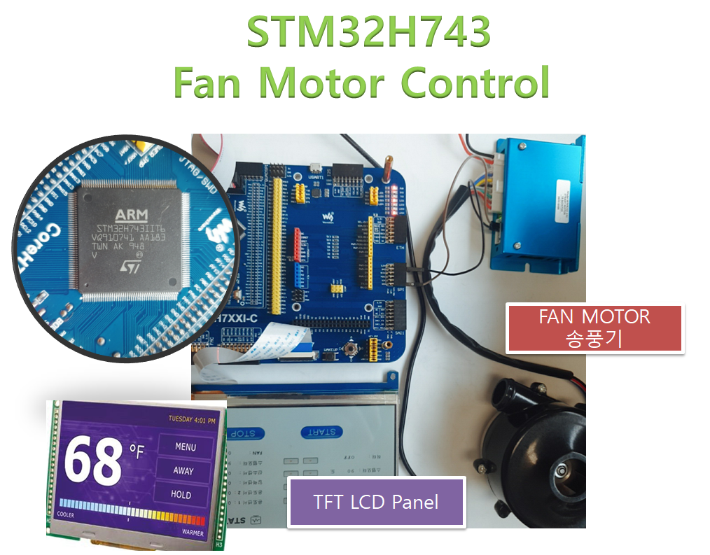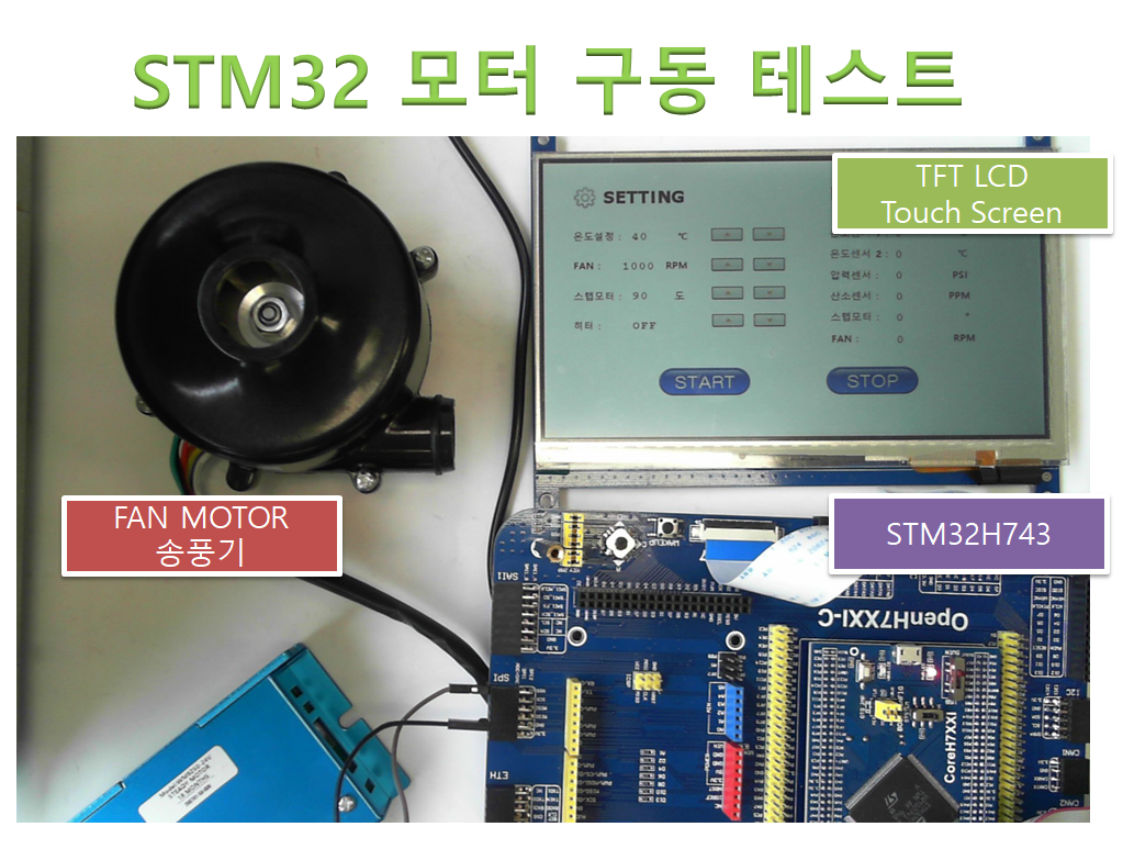 터치스크린을 이용하여 모터 속도를 조절합니다.