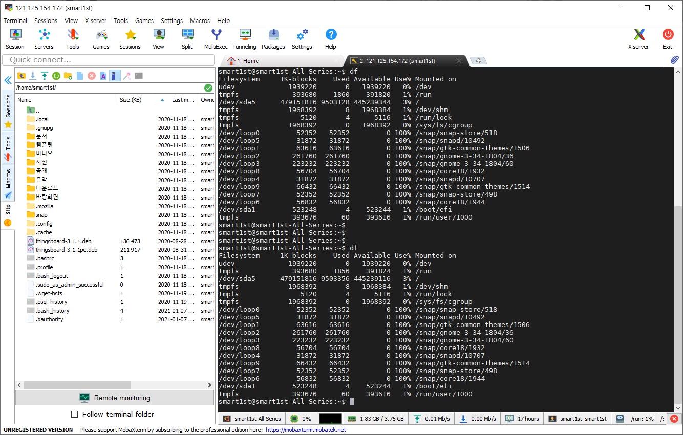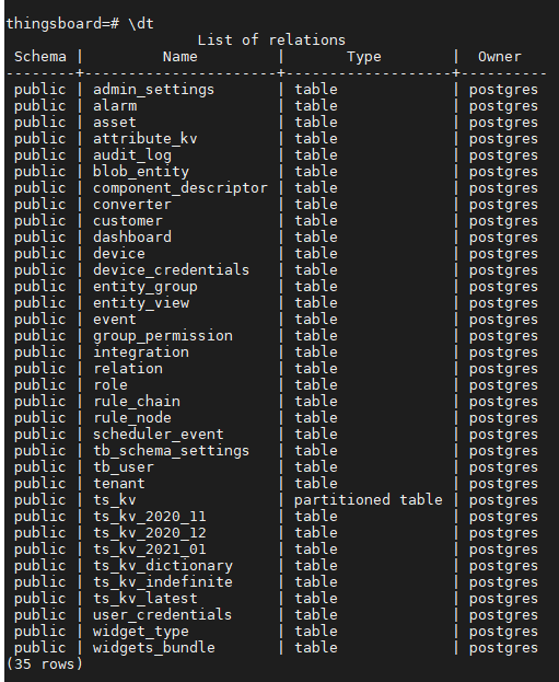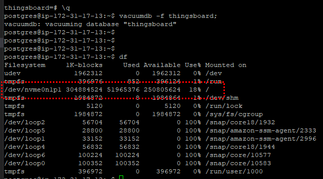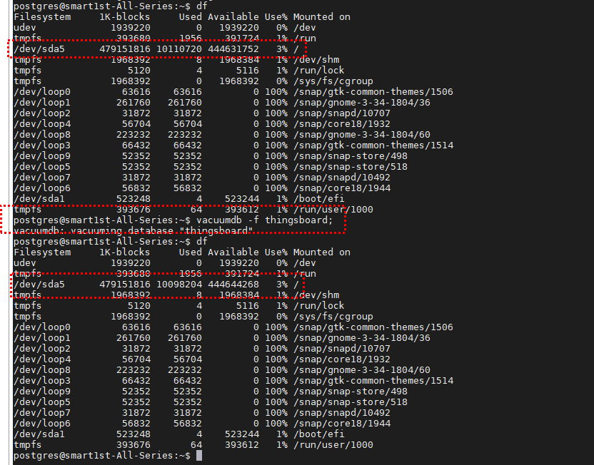 Thingsboard 데이터베이스의 크기는 지속적으로 증가하고 있습니다. 오래된 데이터는 수시로 삭제되어야합니다.