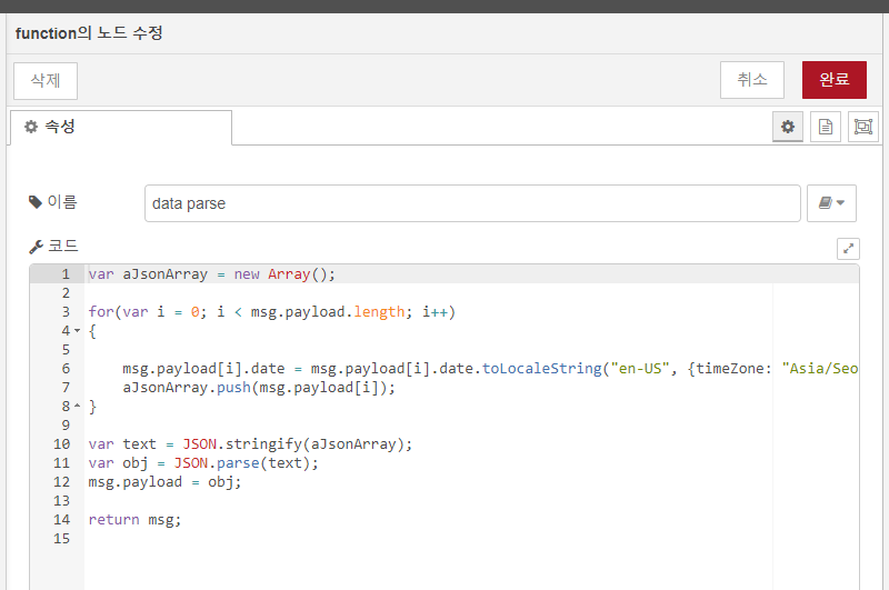 msg.payload[i].date = msg.payload[i].date.toLocaleString("en-US", {timeZone: "Asia/Seoul"});
