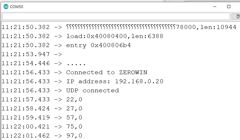 - 아두이노 시리얼과 연결하여 통신테스트 OK