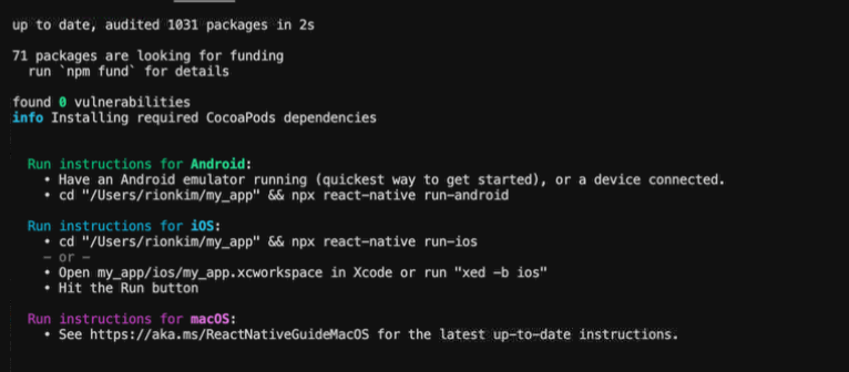 진짜 목,금 부터 오늘(월)까지 하루종일 리액트 네이티브 run-ios 에러가 끊임없이 떠서 Xcode 다시 깔고.. 깔았던 cocoapods 삭제했다가 npm 삭제했다가 sudo gem install ffi 등등 이걸 몇번을 한건지..🥲 한